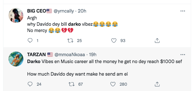 Fans reacts after Davido call out Darkovibes for donation