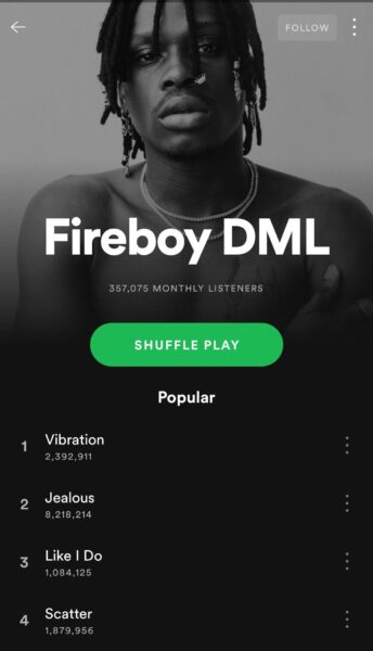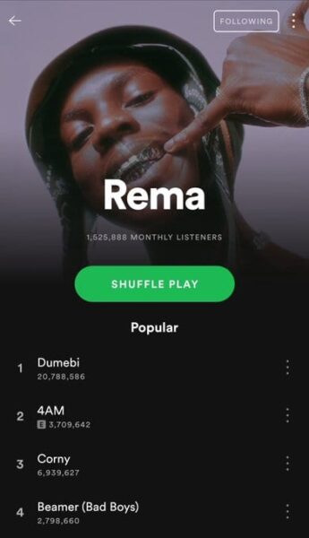 Rema has a total of 47,024,573 views on Youtube while Fireboy DML has a total of 34,689,866 views on Youtube. While on Spotify Fireboy has a total of 357,075 monthly listeners and Rema has a total of 1,525,888 monthly listeners.