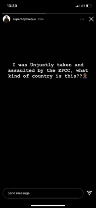 Explaining the unfortunate ordeal, Cheque wrote; “I was unjustly taken and assaulted by the EFCC, what kind of country is this??”